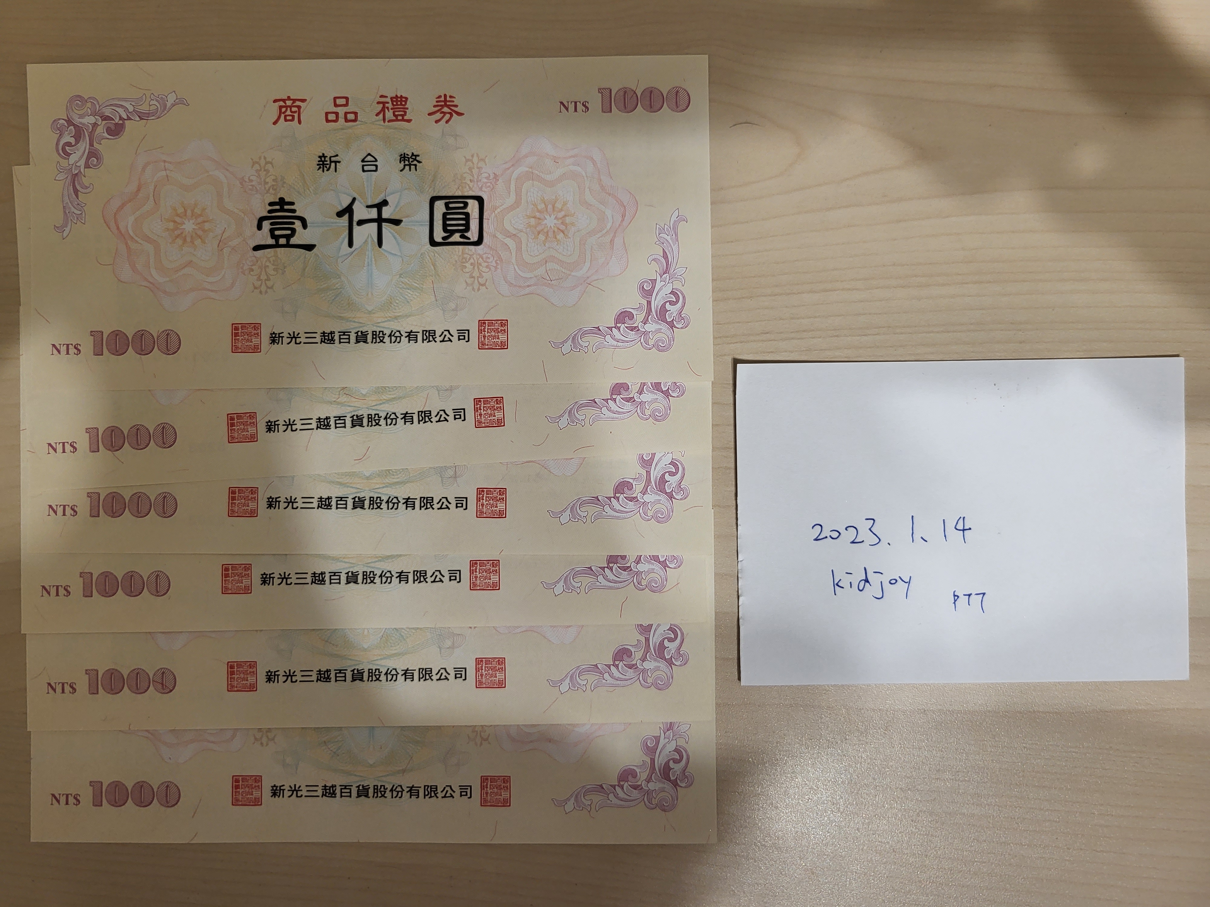 1. 商品名稱:新光三越 6000元禮券