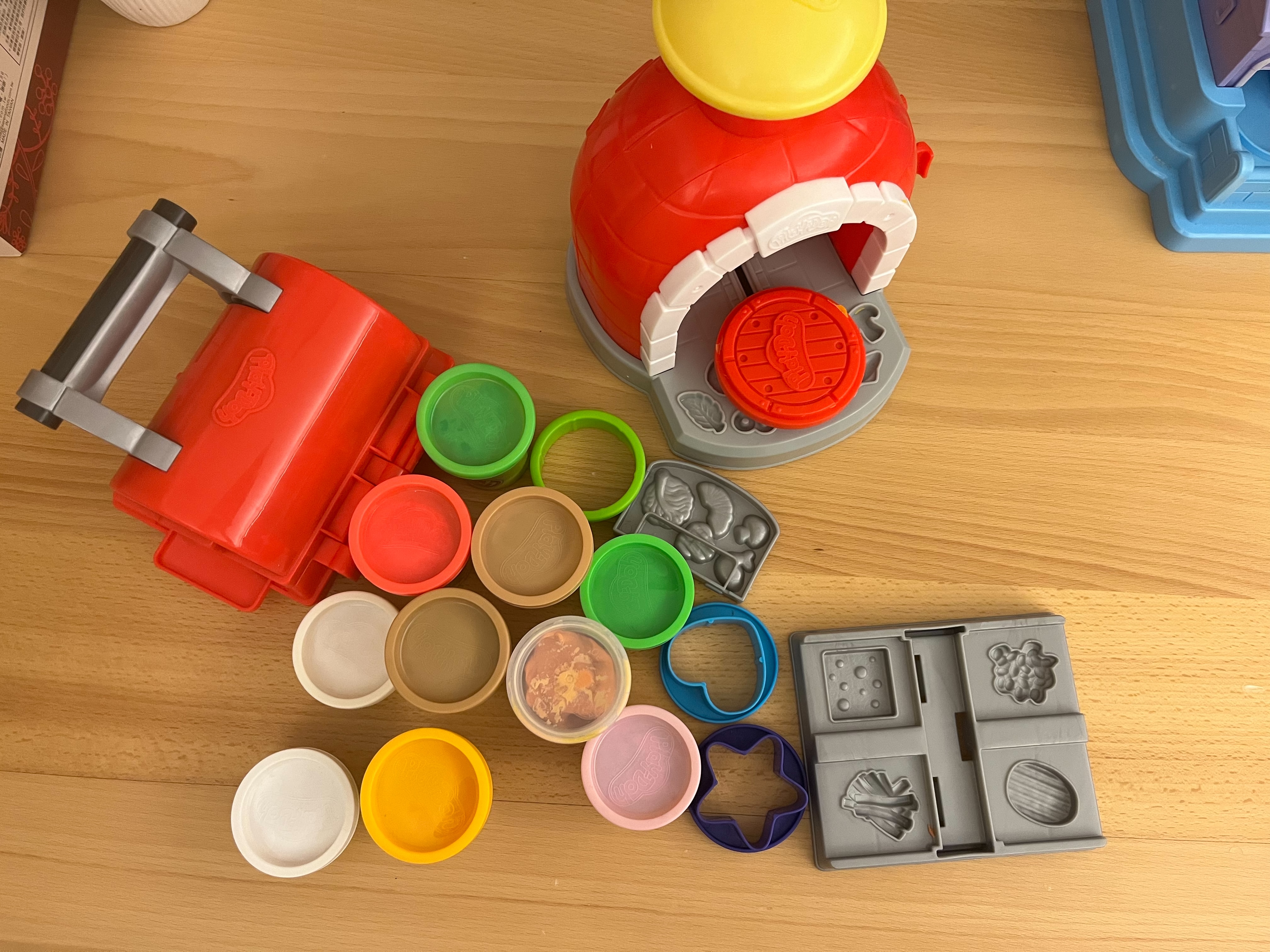 1.黏土玩具,含模具、壓披薩屋,部分黏土可能乾了