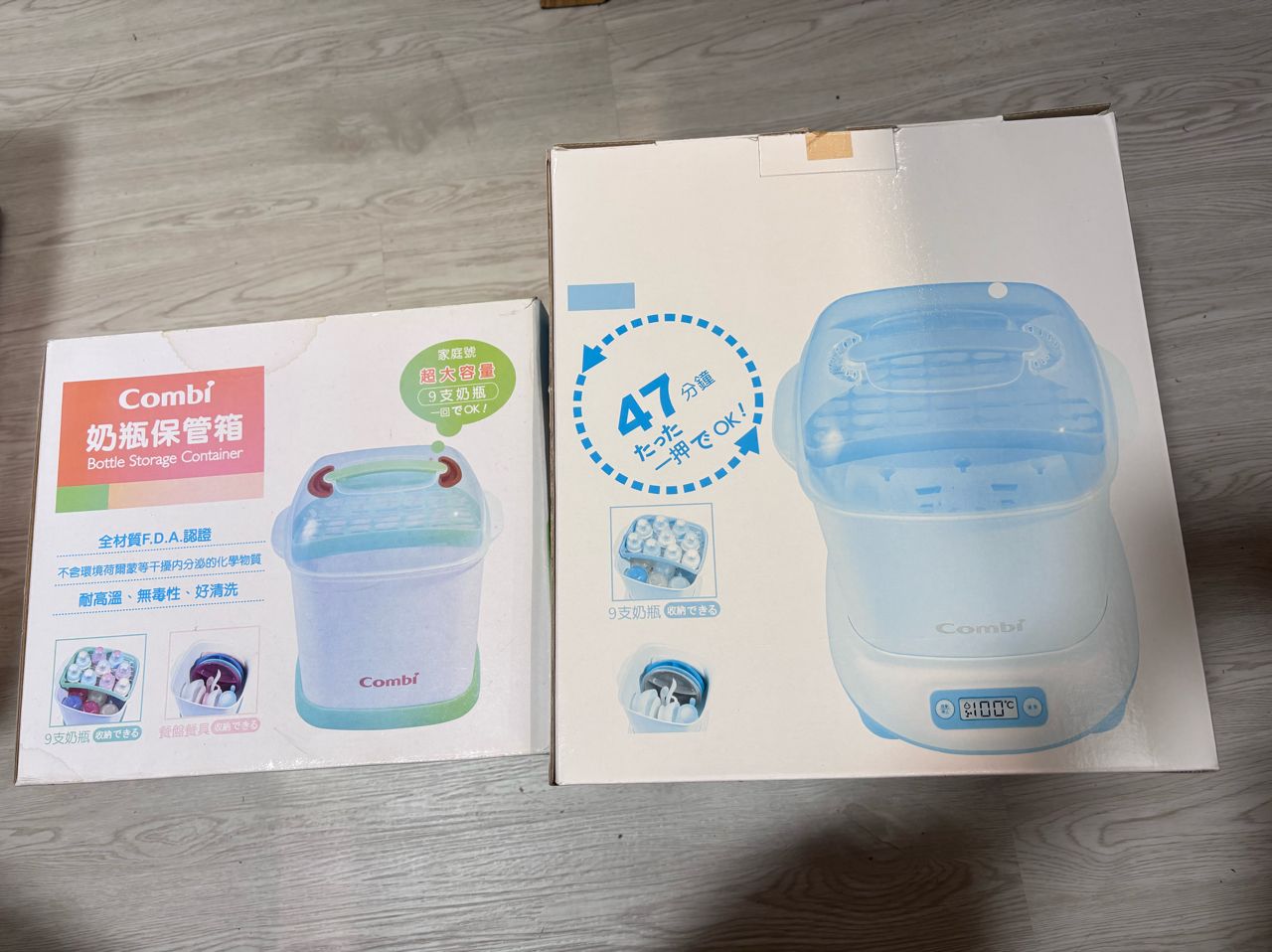 物 品:二手combi奶瓶消毒鍋+奶瓶保管箱