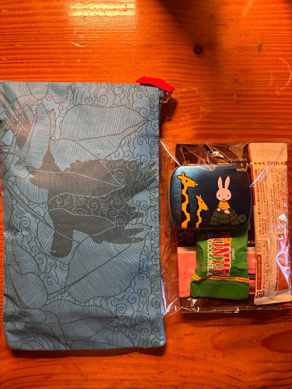 大整理時找到沒有在使用的外套、手套與親人出國贈送的過夜包與零食