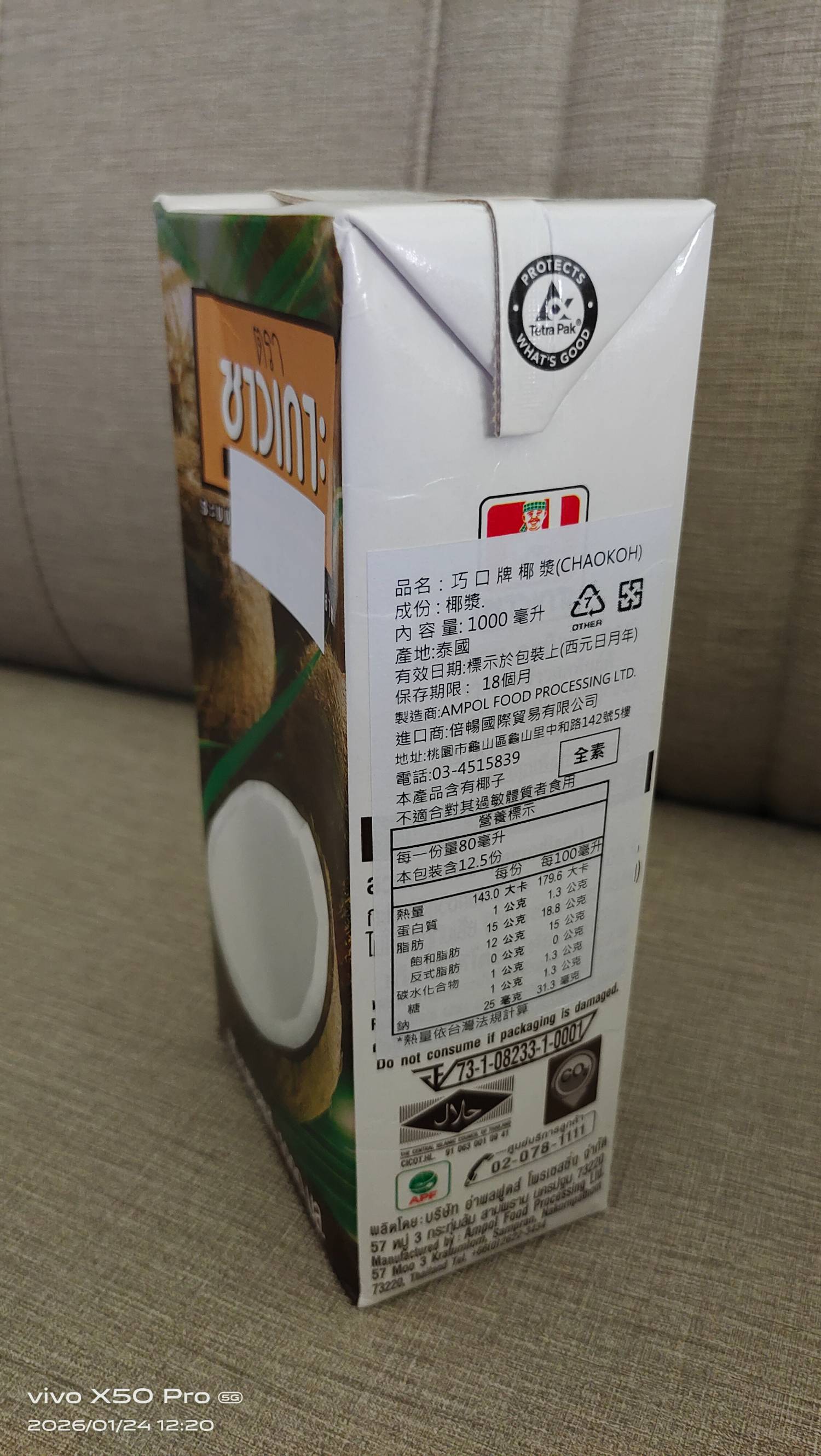 物 品:泰國CHAOKOH巧口牌椰漿 1000ml 2罐