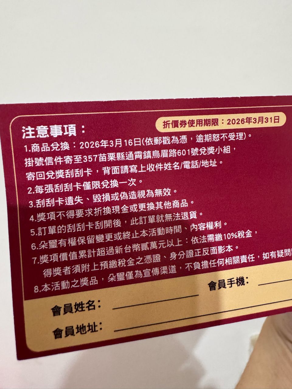到期日(食品及美妝品請加上到期日): 商品兌換券期限為2026.03.16