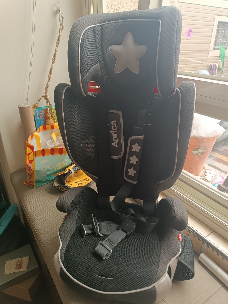Africa 汽座拆開成上下,因孩子長大,後來只用下半部的增高墊,須自行組裝。