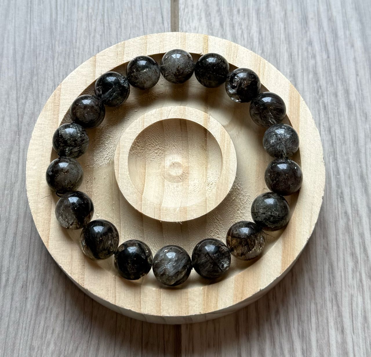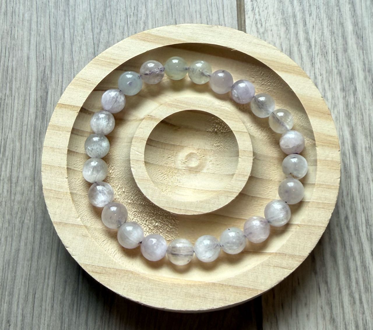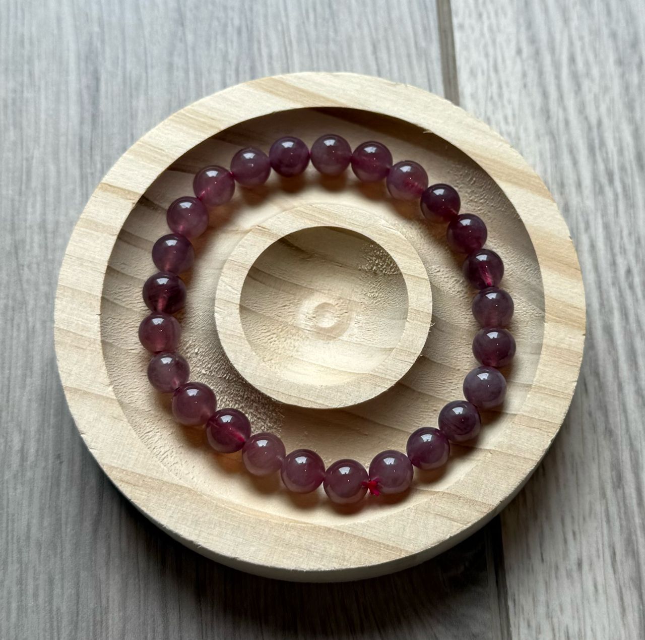 B. 透體拉絲紫鋰輝:8mm,有一點黑色共生