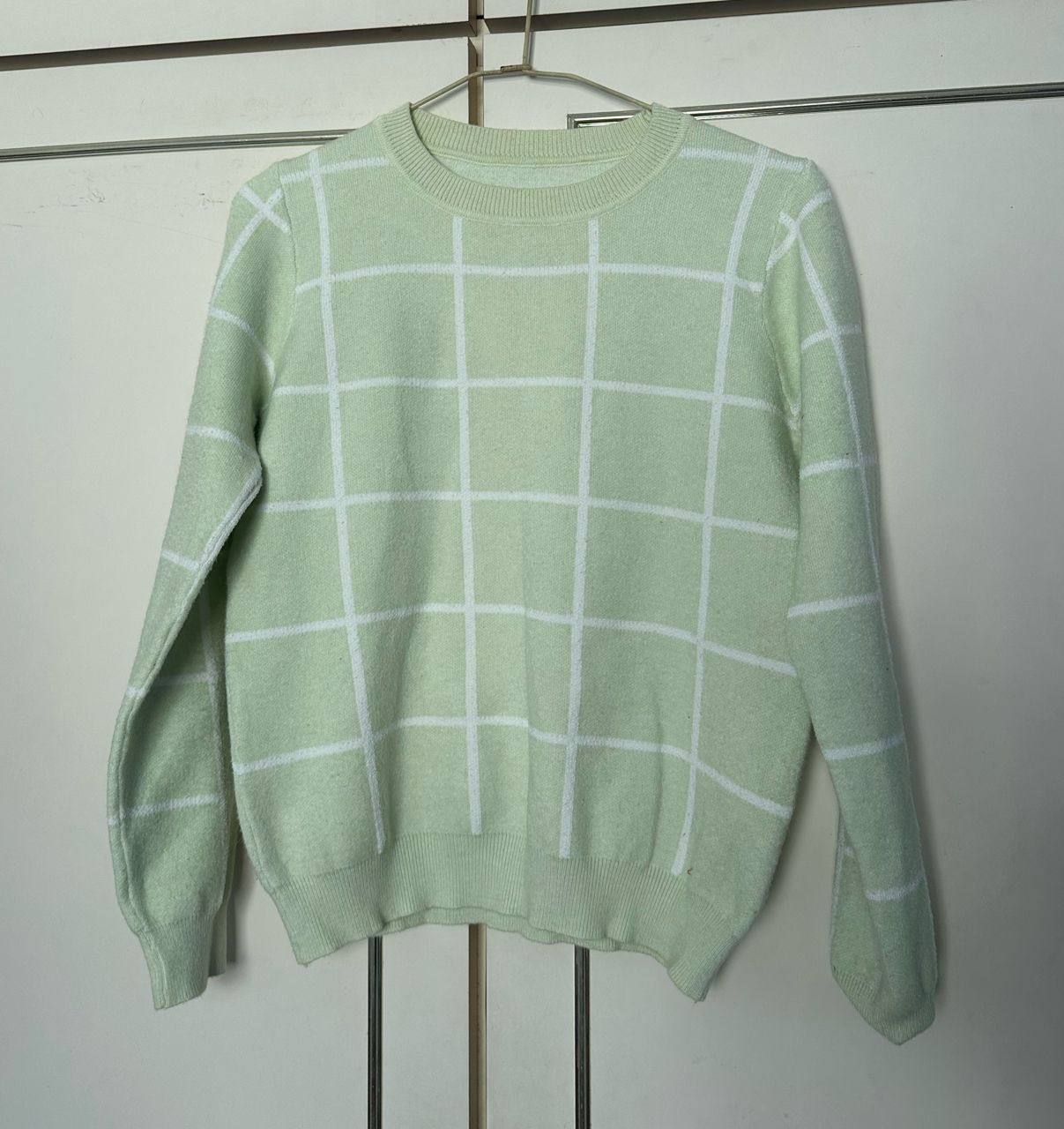 綠色毛衣有些許泛黃