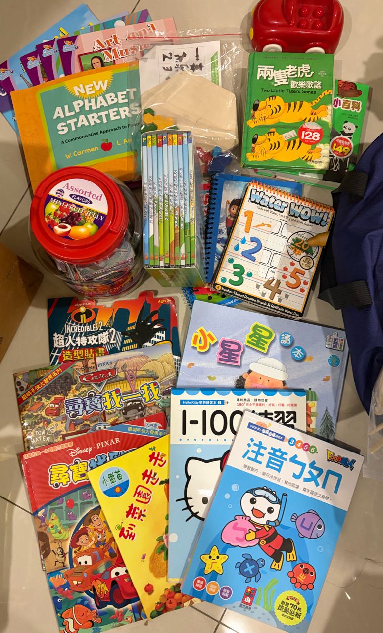 物 品:卡片.讀本.練習本.水畫冊等如圖