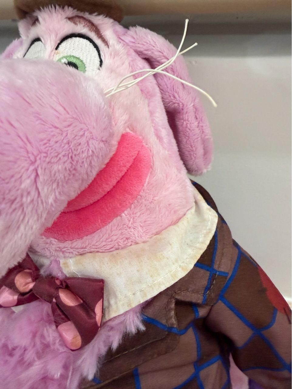 3)也是多年前購自美國迪士尼,買來後都放在櫃子而已,但是白色領子很泛黃(如圖)
