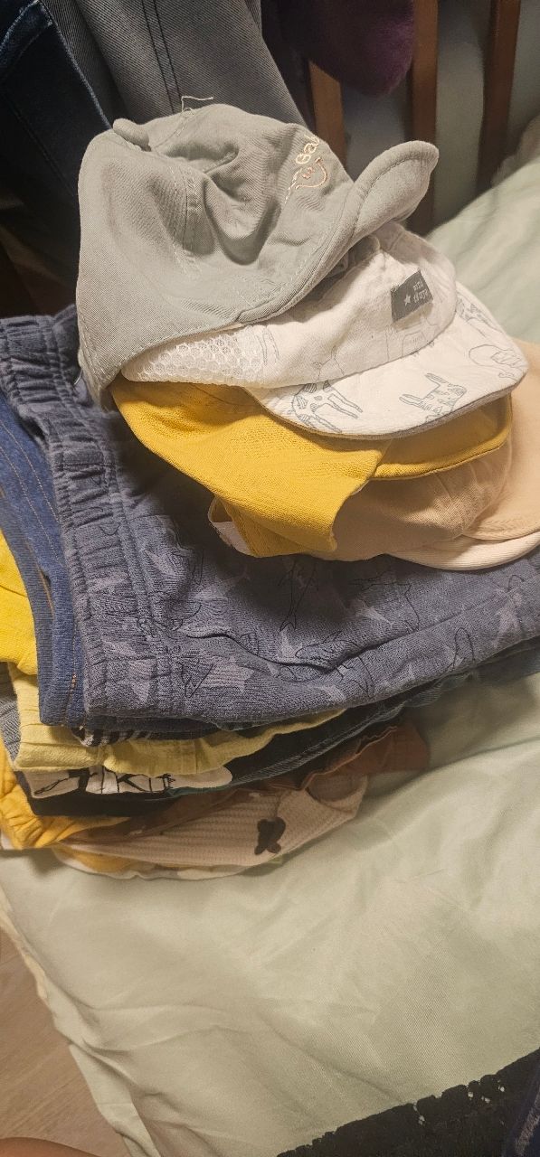 整理孩子目前穿不下的夏天褲子帽子,二手堪用,有些鬆緊帶需更換,不介意再來信。