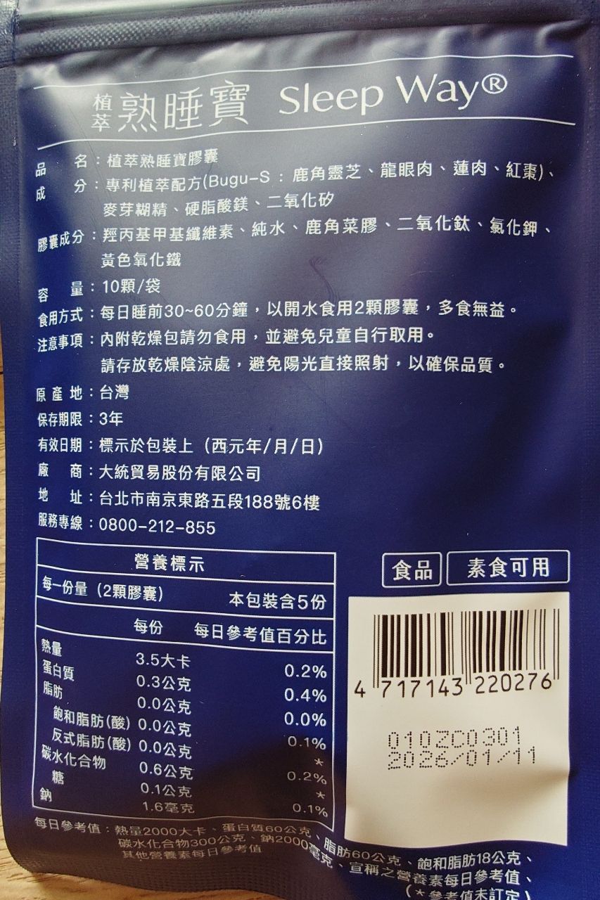到期日(食品及美妝品請加上到期日):2026/01/11