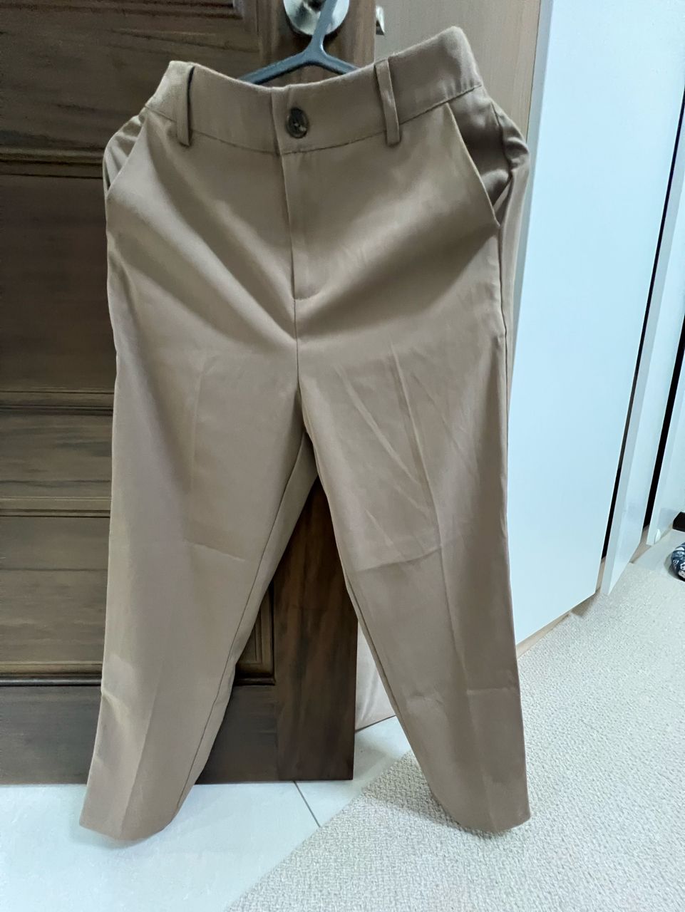 6.咖色鈕扣長褲(後鬆緊)