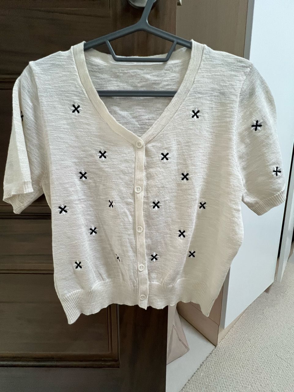 4.米色短袖蝴蝶結上衣