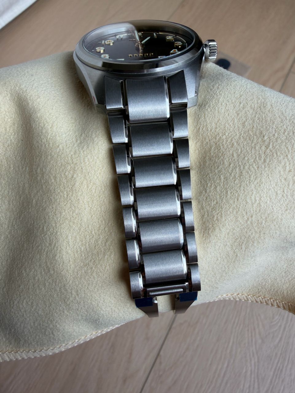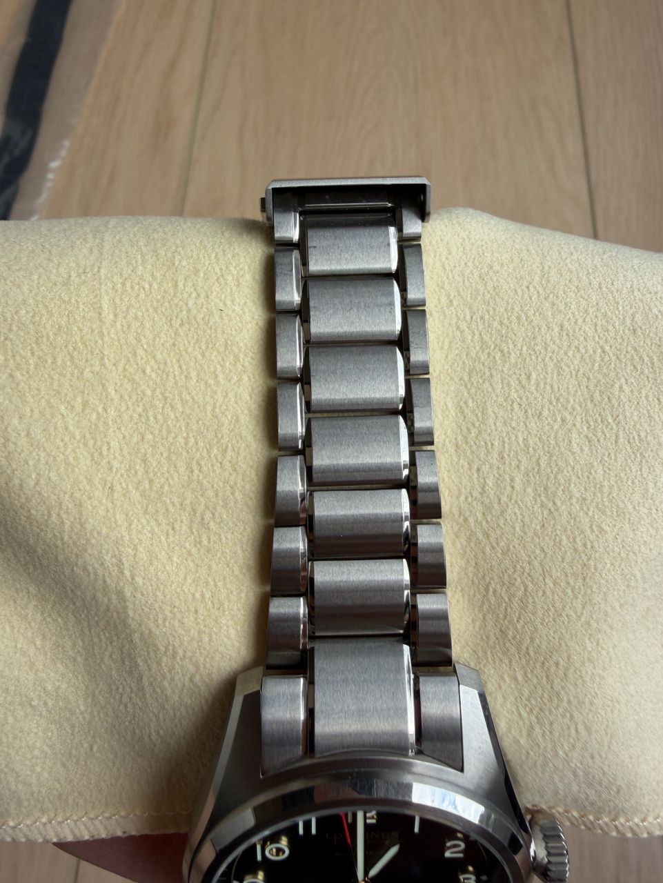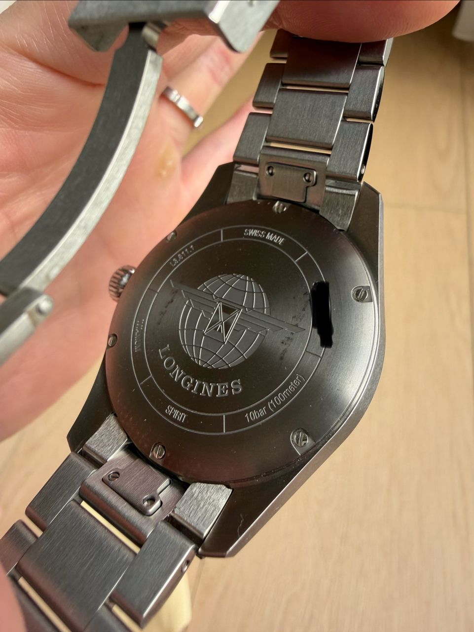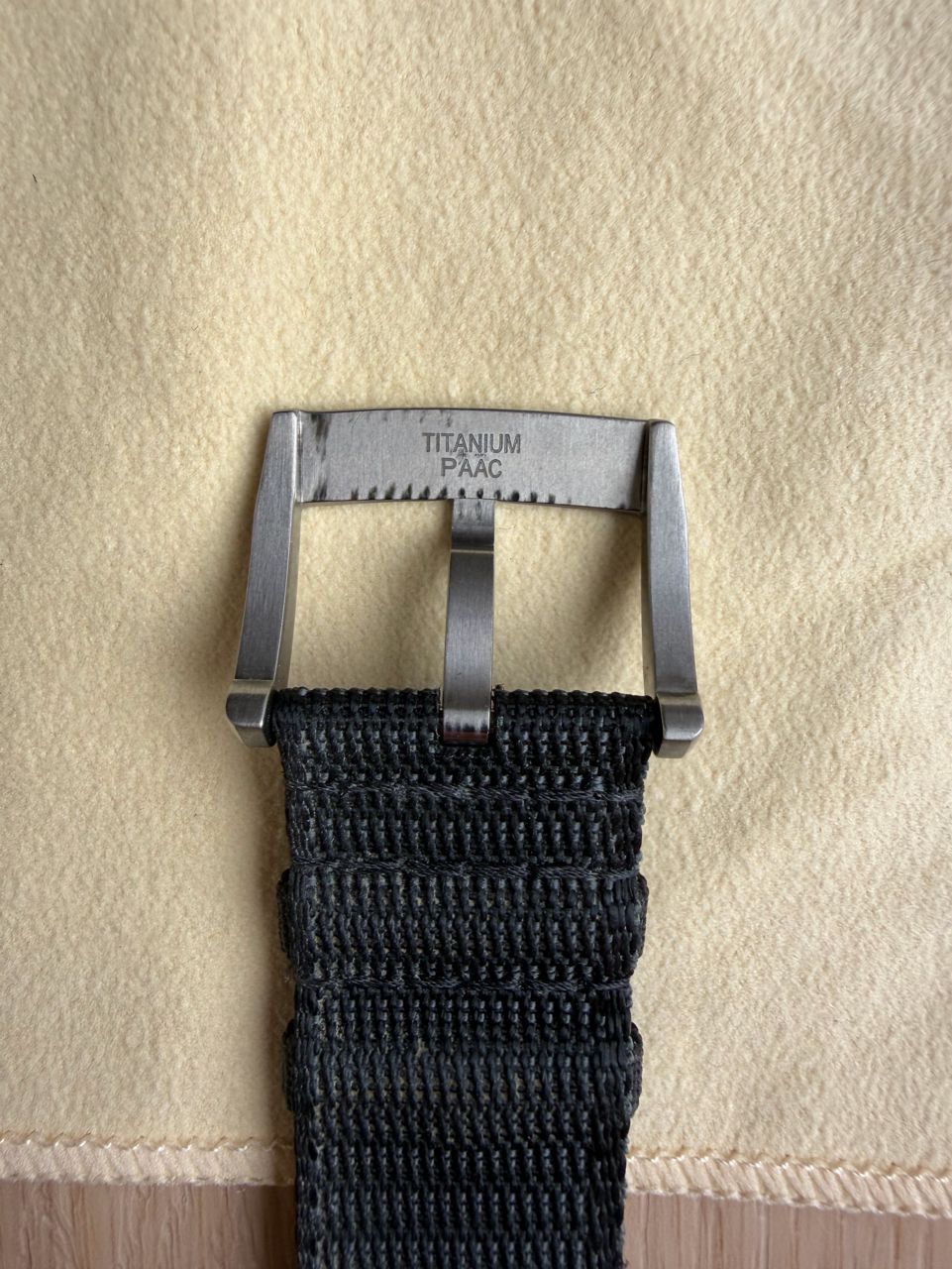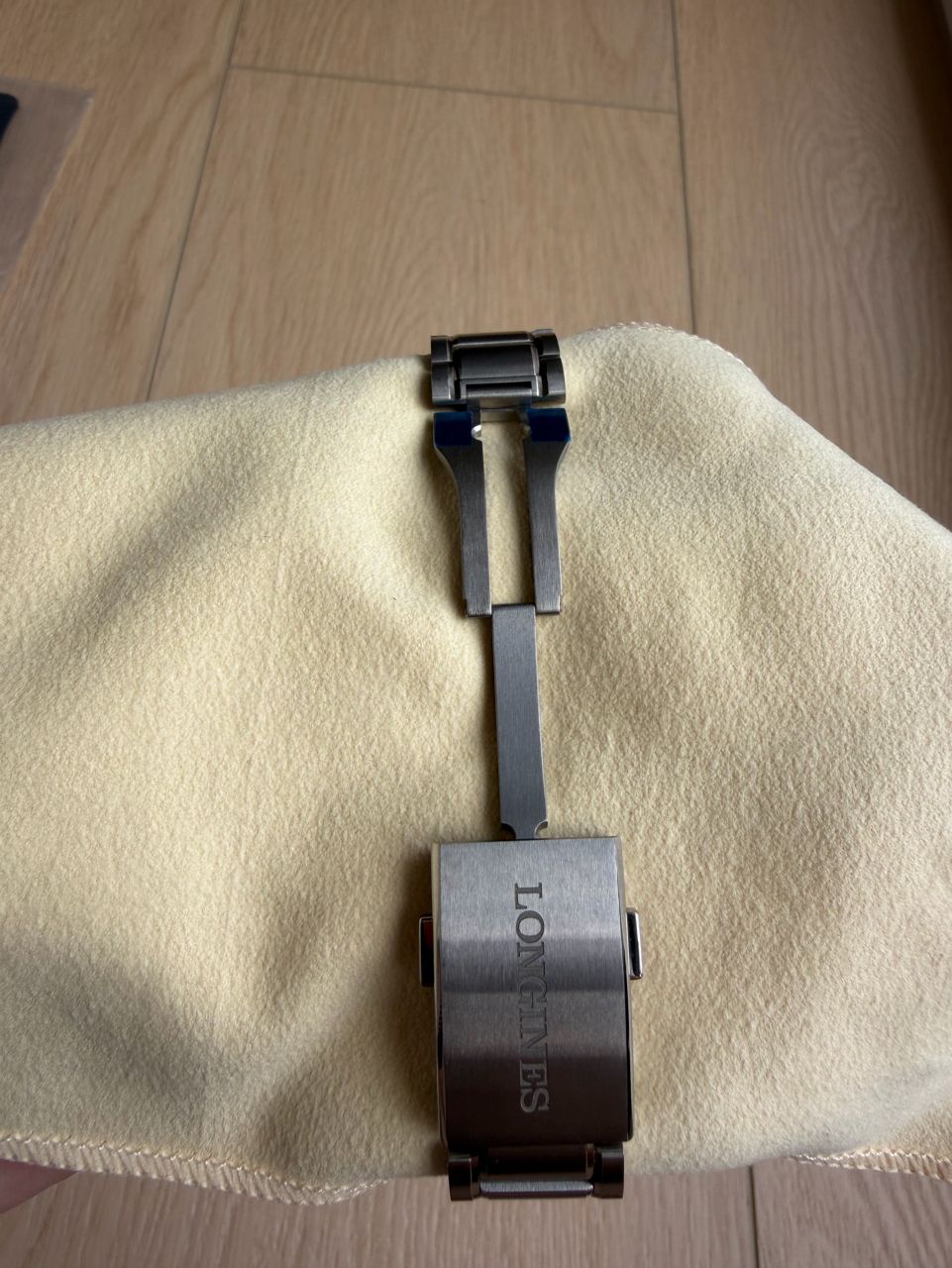 原廠配鈦金屬鍊帶,戴起來非常輕盈舒適,另附原廠帆布錶帶,鈦金屬錶扣