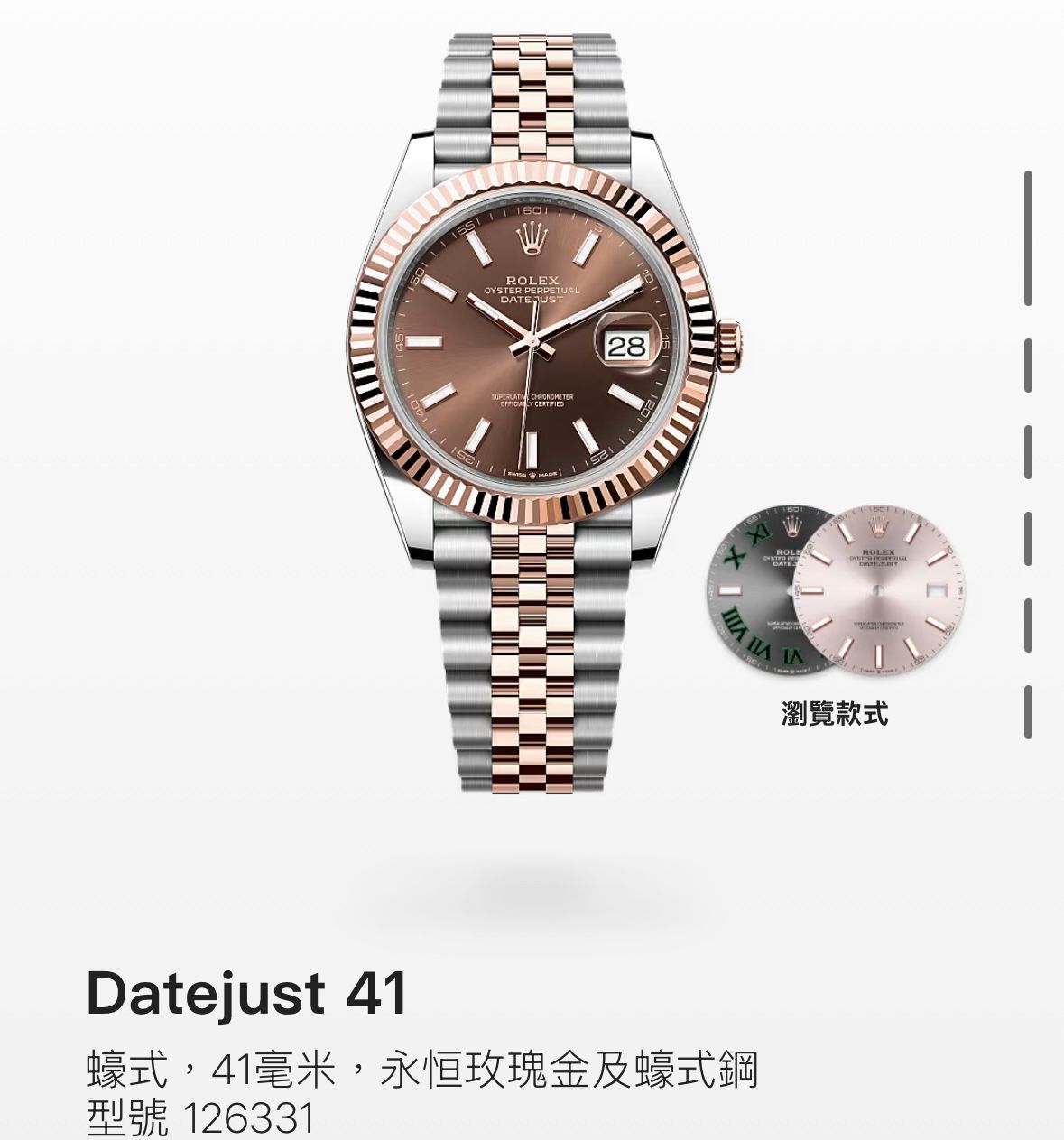 手錶品名:Datejust 41 永恒玫瑰金及蠔式鋼