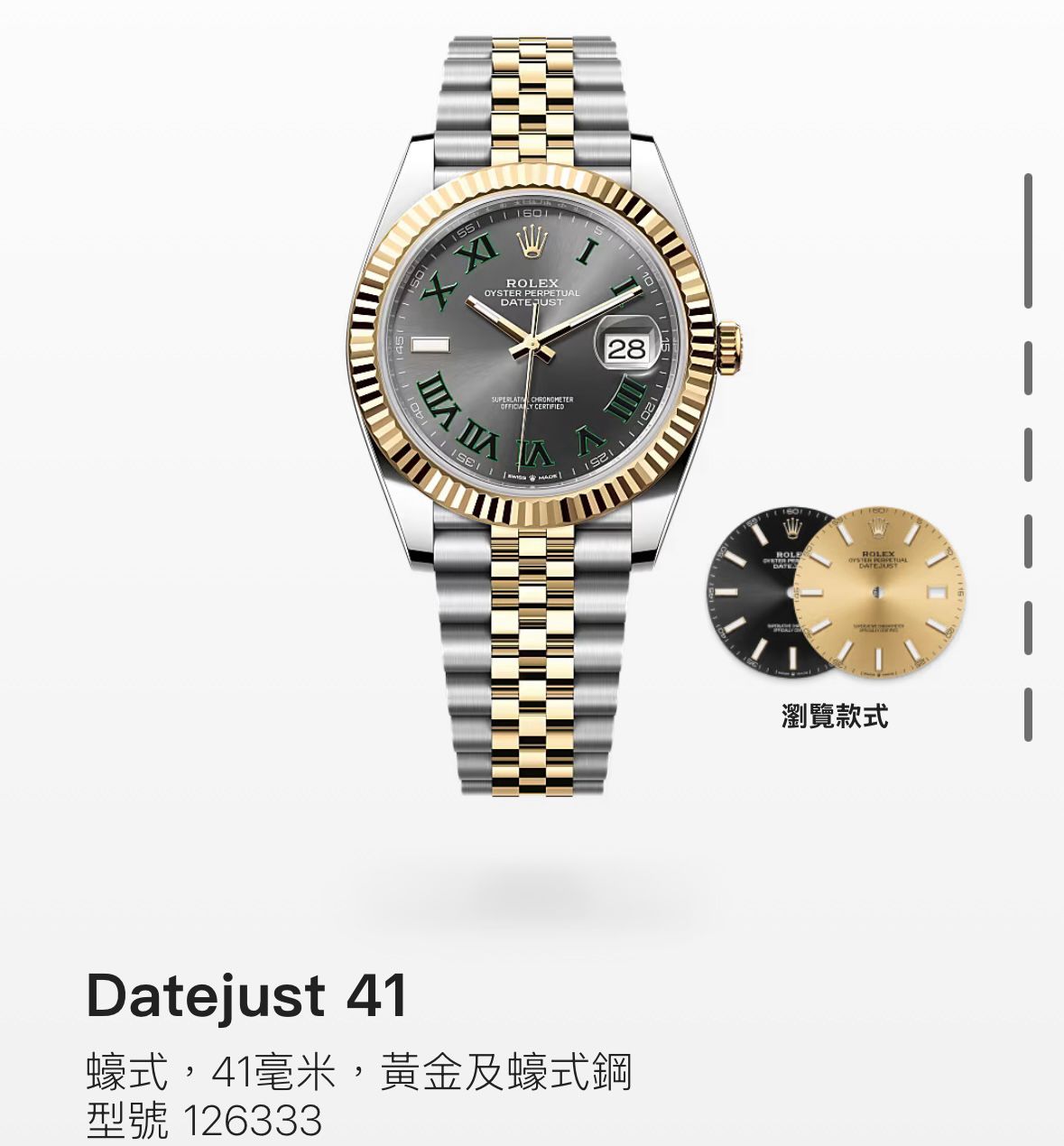 手錶品名:Datejust 41 黃金及蠔式鋼