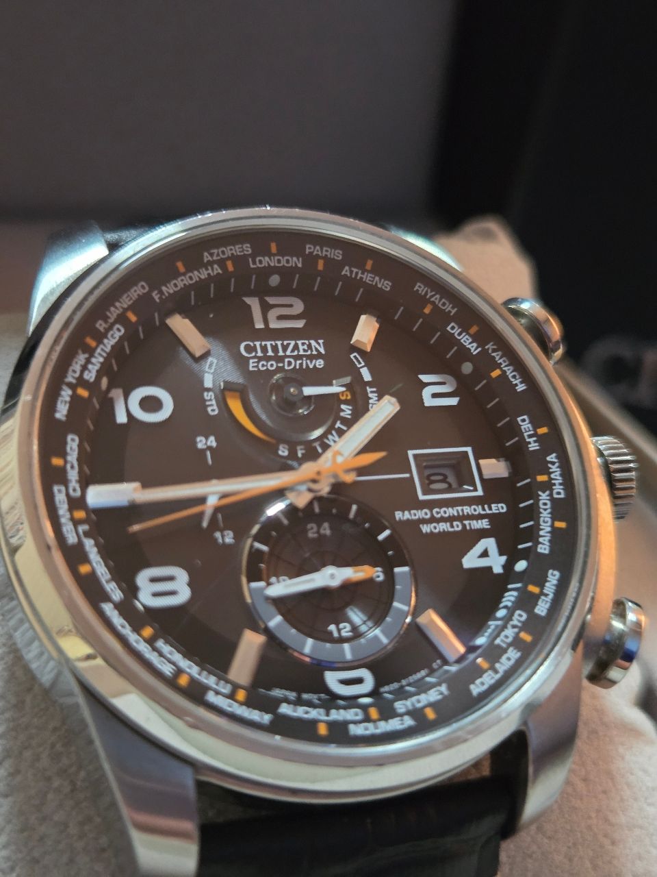 高階機芯,跟其他機芯比起來多了兩地時間功能,再加上電波,整體更加實用!