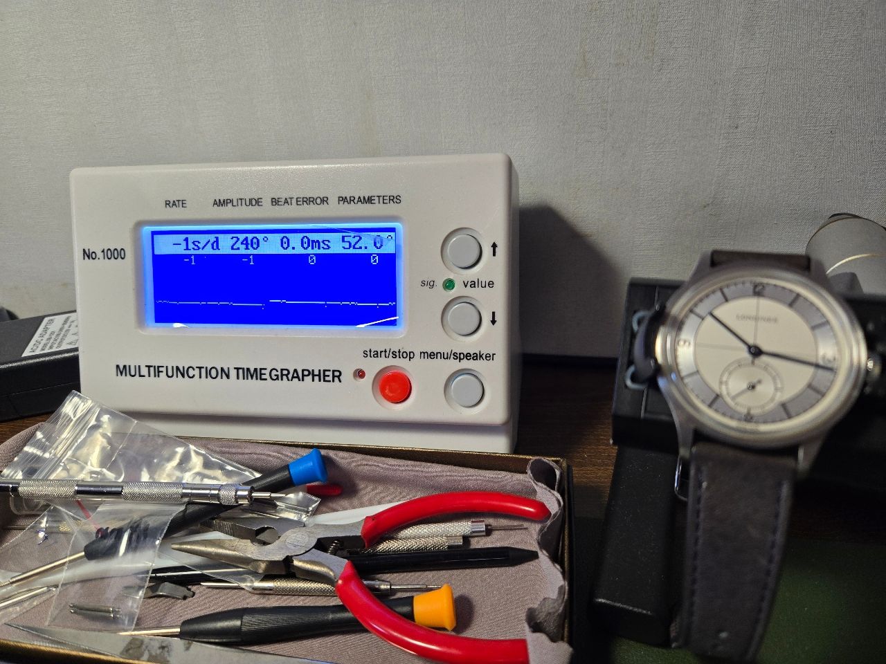 含原廠木盒,說明書,保卡,錶帶工具,兩條原廠錶帶,一條代用錶帶