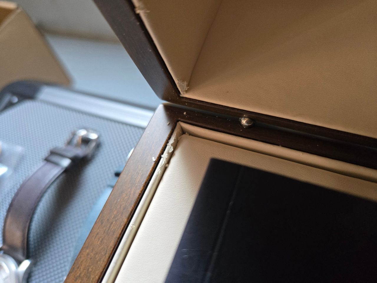 原廠nato帶未使用,藍色麂皮錶帶已舊,更換為vario錶帶,盒內合成皮有部分脆化