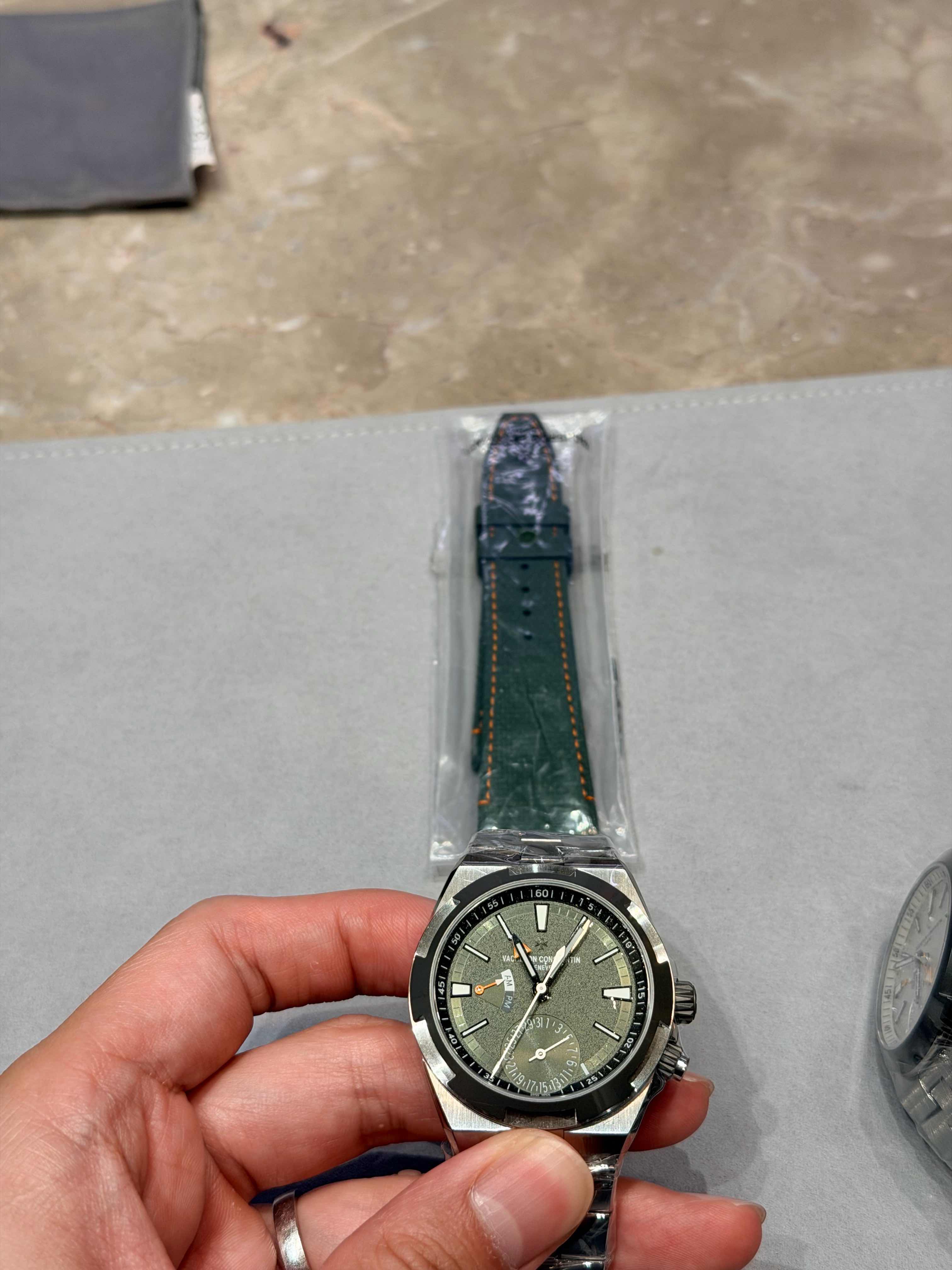綠面的類織布紋路的橡膠錶帶,配上橘縫線我覺得最好看